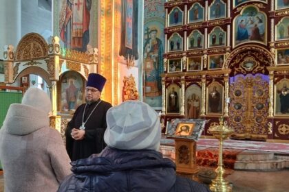 Деятельность Епархии Красноярской митрополии Губернатор Красноярского края встретился с архиереями Красноярской митрополии Епископ Минусинский и Курагинский Серафим совершил Литургию в женском монастыре Благовещения Пресвятой Богородицы города Красноярска Епископ Агафангел освятил молитвенную комнату в СИЗО-4 города Норильска Миссионерство В женском монастыре Красноярска всем желающим раздали Евангелие Прихожане Ачинского благочиния совершили паломническую поездку в Енисейск В храме Рождества Христова города Красноярска будут совершены Литургии с комментариями Общество Святейшему Патриарху Кириллу передана награда лауреата просветительской премии «Знание» за программу «Слово пастыря» В воскресной школе кафедрального собора испекли постные печенья к Крестопоклонной Неделе Священник принял участие в спецпоказе военной драмы «Малыш» в красноярском Доме кино Образование В воскресной школе при храме города Шарыпово отметили День православной книги Священник провёл беседу с юными спортсменами сосновоборского клуба «Пересвет» В красноярском храме Рождества Христова прошли мероприятия, посвящённые Дню православной книги Молодежное служение При кафедральном соборе Красноярска начал работу молодёжный клуб «Лествица» Митрополит Никита провел рабочую встречу с сотрудниками молодежного отдела епархии Воспитанники воскресной школы кафедрального собора провели воскресный день в национальном парке «Красноярские столбы» Социальное служение Священник из Берёзовки совершил Таинство Крещения для воспитанников центра «Солнечный мир» При поддержке Церкви запущено мобильное приложение «Помощь бездомным людям» Православные активисты Сосновоборска изготовили открытки и письма для военнослужащих Военно-патриотическое служение Священник принял участие в спецпоказе военной драмы «Малыш» в красноярском Доме кино Православные активисты Сосновоборска изготовили открытки и письма для военнослужащих В Шарыпове священник благословил гуманитарный груз в зону СВО Тюремное служение Шарыповский благочинный провёл беседу с условно осуждёнными Священник провёл встречу с личным составом ГУФСИН России по Красноярскому краю Приход храма Ачинска провел урок в воскресной школе при СИЗО Окормление казачества В храме города Шарыпово состоялось принятие казачьей присяги В Красноярске молитвенно почтили память жертв расказачивания Священника из Железногорска наградили медалью за заслуги перед казачеством
